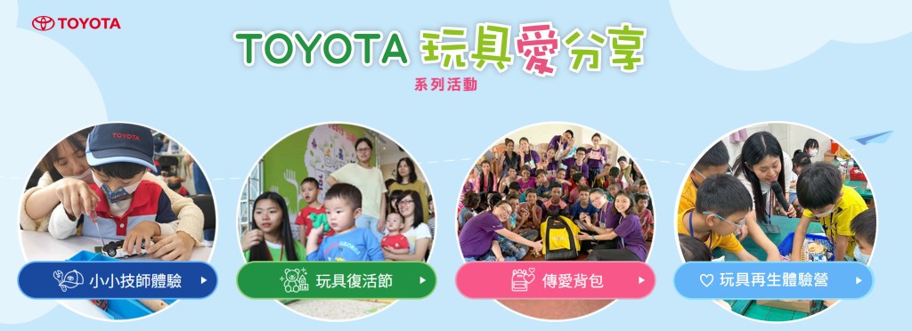 *1:各場活動報名方式與詳細辦法,完整資訊請參考TOYOTA玩具愛分享網頁https://www.toyota.com.tw/TOYOTA_Toy_Story/index.html