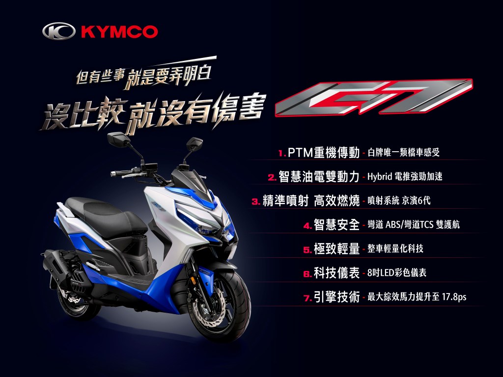 2. 「G7 價格與規格」將於 4 月 18 日公告,並於 4 月 20 日起開放預購接單,最新消息與產品資訊請關注 KYMCO 官方網站。