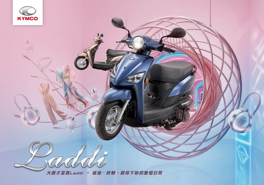 此外,光陽也在母親節來臨之際,驚喜宣布新車款「Laddi」4 月新上市。「Laddi 115」專為女性消費者設計,標榜搭載全新「德國噴射科技」同時享有「市場獨家四年噴射元件保固」,全新的高效環保新動力超群表現出「同級最大馬力9.1ps」領先競品;「Laddi 115」有60.4 km/L「同級最省油」最省荷包、另有 6.6 公升超大油箱「同級最大油箱」不用常跑加油站最省心、「Laddi 115」僅有95 kg 車身輕巧好牽「同級最輕巧」,以及最體貼女性的320mm 超大腳踏空間強調「同級最大最好載」、還有專為亞洲女性量身訂做的730mm 超低座墊高「同級最安心踏地」。「KYMCO Laddi 115」正式以「汰舊換新最低價47,500元 (不含牌險)註」新登場。