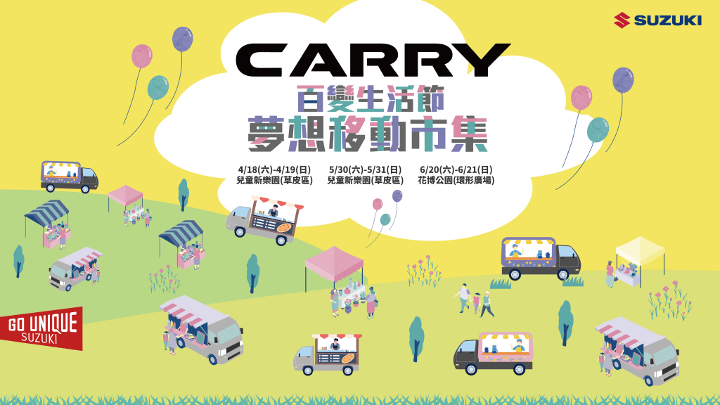 將車輛不只是視為移動工具,而是生活與工作延伸的載體,TAIWAN SUZUKI 於今夏推出「CARRY 夢想移動市集」系列活動,結合在地生活風格與行動商業場景,透過實際體驗展現CARRY的多元可能。